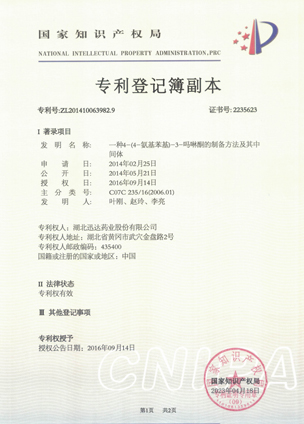 公司擁有一支高素質(zhì)科研隊伍,具備專業(yè)而高效的研發(fā)能力。近幾年,共取得科技成果30項,其中9項獲國家發(fā)明專利,2項獲湖北省科技進步獎,開發(fā)新產(chǎn)品8個,綠色合成、手性合成和催化等技術(shù)引領(lǐng)行業(yè)發(fā)展。主要銷往歐美、日本、韓國、中東、印度等40多個國家和地區(qū)。